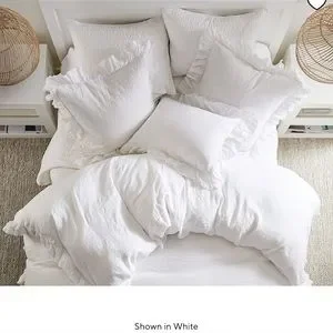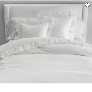 Pottery Barn Belgian Flax Linen Fringe Ruffle Duvet Cover Twin