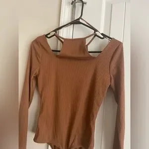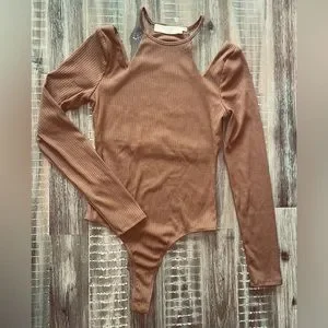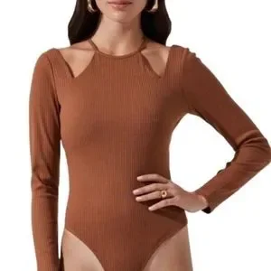NEW - ASTR The Label Brown Halter Neck Long Sleeve Cutout Bodysuit Size Small