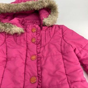 Juicy Couture Ruffle Bell Sleeve Puffer Jacket w/ Fur Hood - Pink | Girls 12M