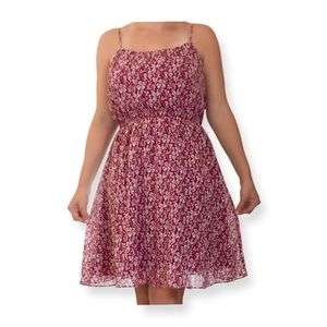 Ann Taylor Loft Magenta floral dress with adjustable straps. Size Medium. Waste stretches.