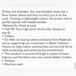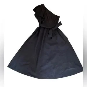 NWT Madewell Ruffled One-Shoulder Midi Dress black 0