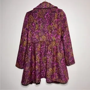tags: women’s hobo chic style coat, paisley print princess coat, women’s wool blend coat, women’s long-line coat, boho chic style coat, women’s small Fall coat, women’z small Winter coats, women’s pink coat, pink princess coat, women’s wool coats. women’s tailored jackets, women’s jacket small, women’s bright & colorful paisley print coat, women’s bohemian coat, women’s neon paisley print coat, long-line women’s coat, women’s pink wool blend coat, hippie barbie coat, peairie, peasant, cottagecore, granny chic style coats, women’s coastal cowgirl style coat, peasant style tops, bohemian winter jacket, retro women’s coat, Y2K style coat small, back to school coats, workwear coat, women’s business casual attire small, Plenty coat small, Plenty paisley print coat, oversized, Plenty princess coat, princess jacket, women’s trench coat, colorful print trench coat, floral print coat, rodeo, western style coat, ruffle hem coat, artsy, best women’s coat, Plenty By Tracy Reese coat, peplum hem coats small: