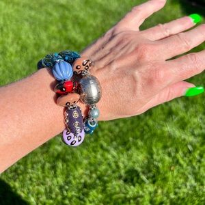 Beautiful set of two beaded stretchy bracelets with a fun colorful mix of beads. Could be worn with many different colors. In great condition
