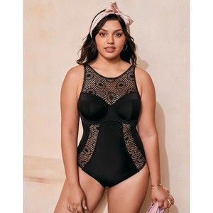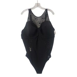 ADORE ME Black One Piece Swimsuit with Crochet Detail Plus Size 44DD NEW