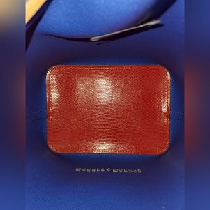 Red bag with beautiful blue interior. Wristlet