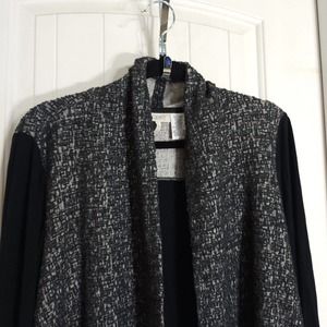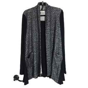 Logo Lori Goldstein Womens Cardigan Gray Knit Long Sleeve Open Front Sweater L