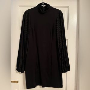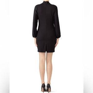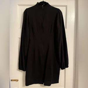 Black crepe (63% Viscose, 32% Nylon, 5% Elastane). Sheath. High neck. Long sleeves. Hidden back zipper. 36.5" from shoulder to hemline.