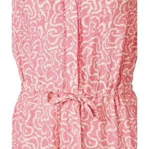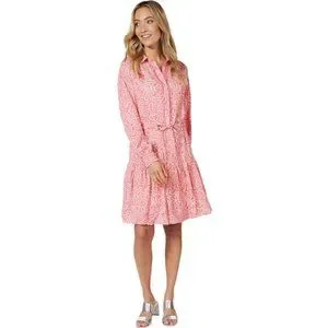 If you love pink, you'll love this darling dress by EsQualo! Not only is the color stunning, but the detailing is high end. A lace edging runs down the front button closure, creating an eye-appealing addition while the subtle tiered bottom and elasticized cuffs add even more interest. The belt in tie allows for cinching at the waist and button-down top portion includes pink buttons.