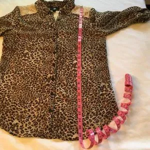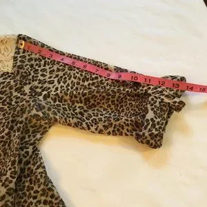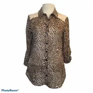 Sheer Cheetah Print With Lace Button Front Top Size M
