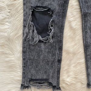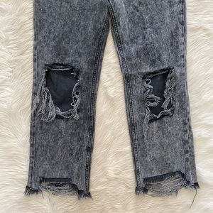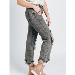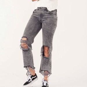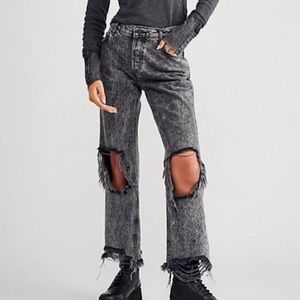 Free People Gray Acid Wash Maggie Distressed Straight Leg Jeans Bottlerocket