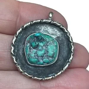 Vintage authentic Navajo Signed Turquoise pendant silver
