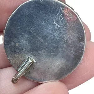 pendant is appx 30mm round very solid piece with real turquoise. lovely! preownd some wear. not a new item appx 1950s