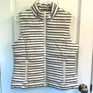 NWT navy and white stripe puffer vest with two pockets. Smoke and pet free home.