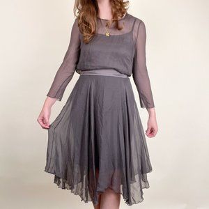 Vintage 100% Silk 4 Piece Set Midi Skirt Sheer Matching Coordinating Formal Chic