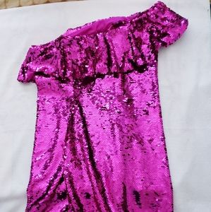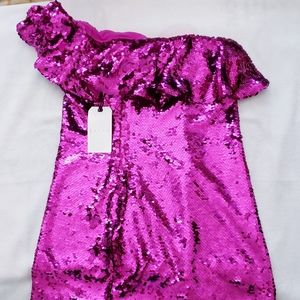 Leith Womens Pink Purple Sequin One Shoulder Dress