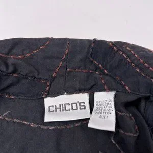 Chicos Black Abstract Art to Wear Contrast Stitch Button Blazer Jacket M 1 FLAW