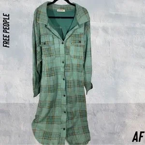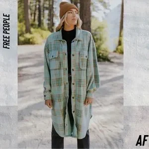 FREE PEOPLE LONG RUBY PLAID JACKET GREEN COMBO NEW LARGE