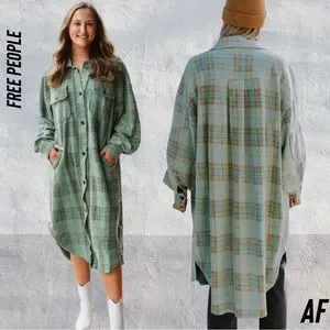 FREE PEOPLE LONG RUBY PLAID JACKET IN GREEN COMBO NEW LARGE