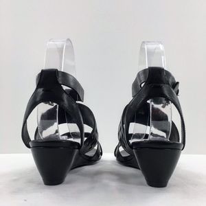 Rebecca Minkoff Sandals Black Tan Leather Gladiator Strappy Wedge Sz 7