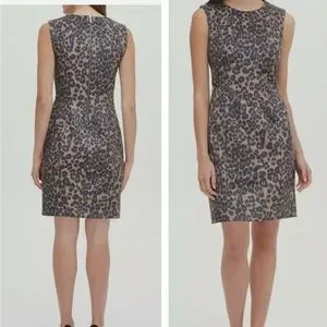 TOMMY HILFIGER LEOPARD FAUX SUEDE SCUBA SHEATH DRESS