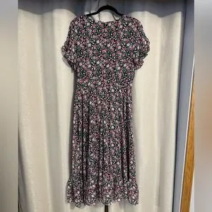 Karl Lagerfeld Paris- Floral Short Sleeve Chiffon Faux Wrap Dress