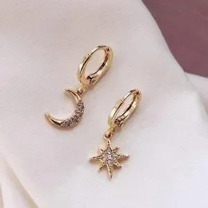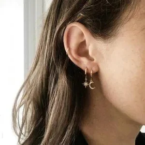 NEW 18K GOLD DIAMOND MOON STAR HOOPS