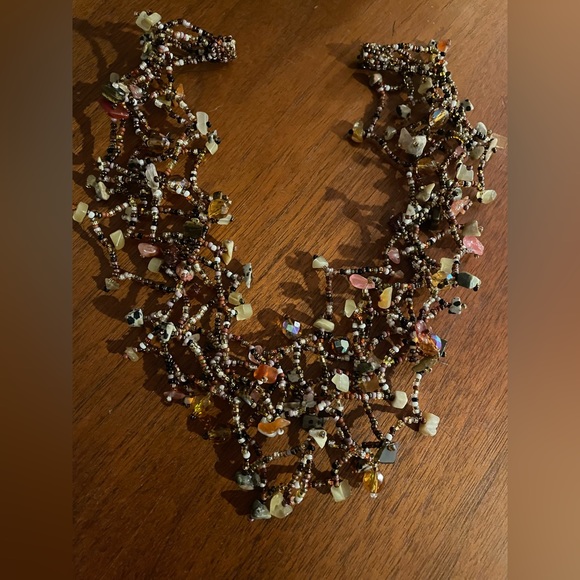 Beautiful colorful multi strand necklace of seed beads, gem stones and crystals. (6 strands) strong magnetic clasp. 18”