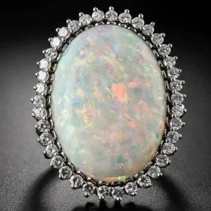 NEW HUGE OPAL DIAMOND HALO STERLING SILVER RING