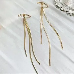 NEW 18K ROSE GOLD LONG TASSEL ARC EARRINGS