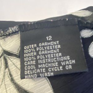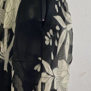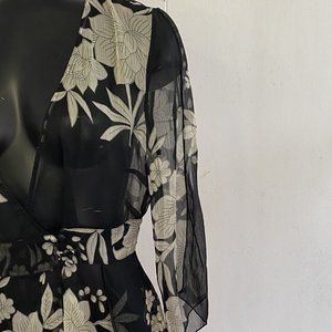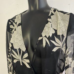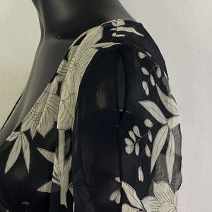 Rockmans Sheer Wrap Blouse/Top, Black w Cream Floral Print, Size 12