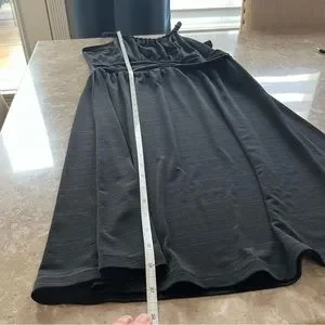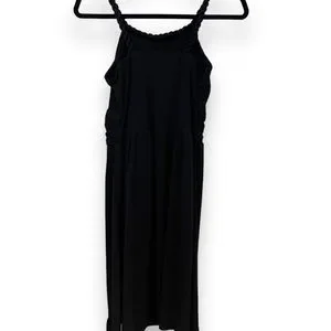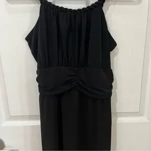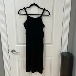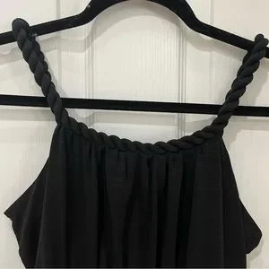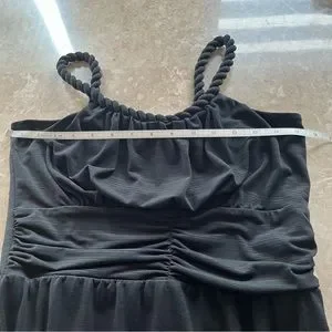 size small black ruffled waist corded straps 95% polyester 5% spandex excellent used condition