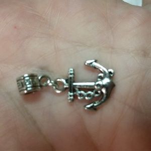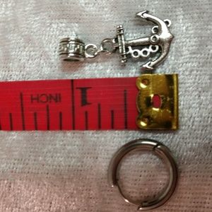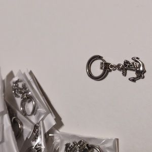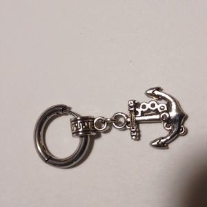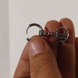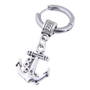 2pc Stainless Anchor Cross Earring Single Ear Silver-tone Hinged Hoop