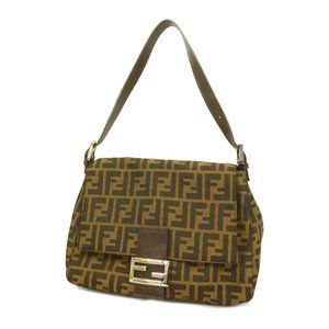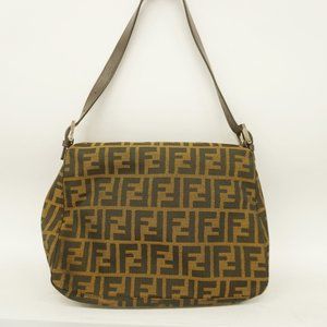 FENDI[3zc3916] Auth Handbag Zucca Nylon Canvas Brown Silver metal