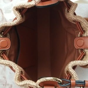 Woven raffia and leather top handle
