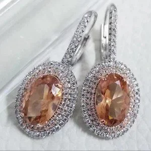 NEW SILVER OVAL DIAMOND MORGANITE HOOP EARRINGS, NICE EARRINGS, CUTE EARRINGS.