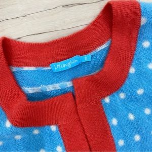 J. McLaughlin Dottie Seabreeze Polka Dot Cashmere Crew Neck Cardigan Sweater Sm