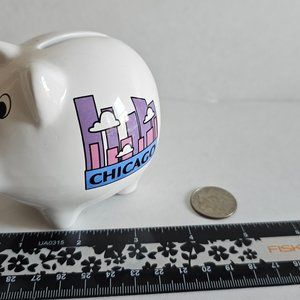 This little piggy has the Chicago Skyline and "Chicago" logo written on both sides.