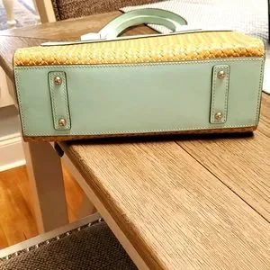 Beautiful Mint Green with woven Leather Janine Tote with Gold Hardware and snap closure. Front and inside zipper with extra pocket. Like new condition, medium size and rare kind.