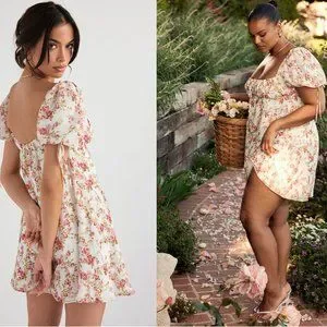 Short and sweet describes this dress perfectly! This mini dress with an Empire cut and gathered bust. It's set in a beautiful Rose print that's perfect for sunny days and has an ultra feminine swing shape. The pretty puff sleeves and short hemline add to the feminine vibe. Fully lined for comfort, it zips to the back for easy on. The 'Regular Cup' option suits cup size A-C whilst the 'Bigger Cup' option suits cup size D-E.
