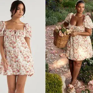 HOUSE OF CB 'Princess' Rose Print Mini Dress NWOT
