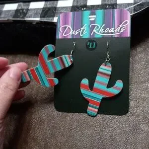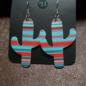 Very lightweight Double-sided pleather earrings! Southwestern Serape turquoise and red Cactus earrings for any look!