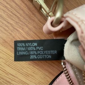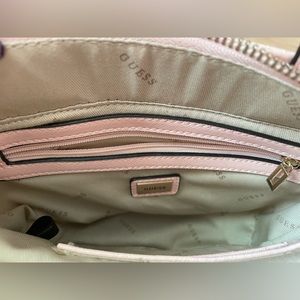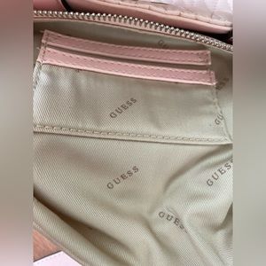 GUESS - NWOT- Mini nylon tote w/ crossbody strap, light pink with rose gold color hardware, zipper closure, 8 inches wide x 10 inches high to top of handles, 2 card slots inside and inside zipper pocket, Condition is brand new, never used.
