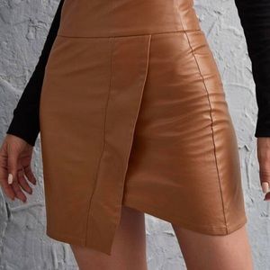 SHEIN Privé Faux Leather Asymmetrical Hem Skirt. Excellent, like new condition. Brown, size Medium. From smoke free home.