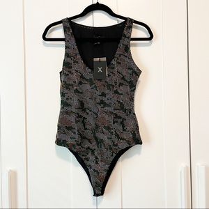 X by NBD It Girl Embellished Bodysuit in Green & Gunmetal x revolve