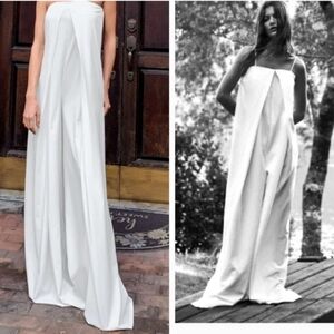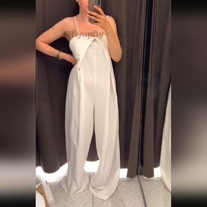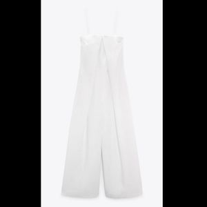 ZARA STRAPLESS LINEN BLEND JUMPSUIT WHITE