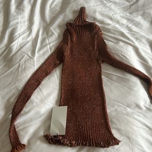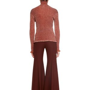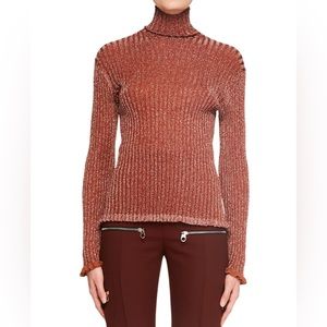 Chloe - Lurex Rib Turtleneck Knit Sweater Top in Metallic Red XS