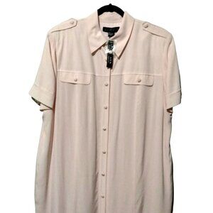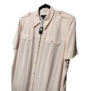 August Silk Womens Blush Button Front Shoulder Pads Shirt Dress Size 22W