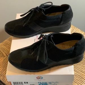 CLARKS CLOUDSTEPPERS Caddell Fly Wedges NWT Black 8 Narrow