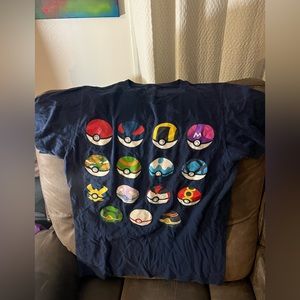 Navy T-shirt from Pokémon with a colorful design on front that features 15 Poké Balls, including Great Ball, Ultra Ball, Master Ball, Safari Ball and more!