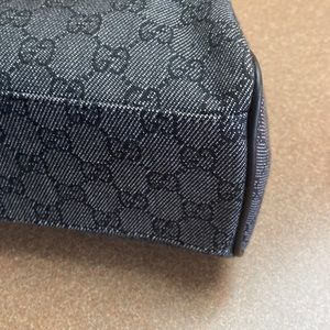 Tom Ford Era. A Beautiful black GG monogrammed Satchel. Leather top handle. Front metal lock closure. Bamboo flap detailing. Trimmed in black tonal leather. Authenticity plaque zip pocket & serial number in side clean lining. Minor color wear on front lock. Minimal rubbing wear on tonal trimming. Minor rubbing area on the interior areas on lock connection. Minimal Color wear on threads on upper area of the flap. Very good used condition.